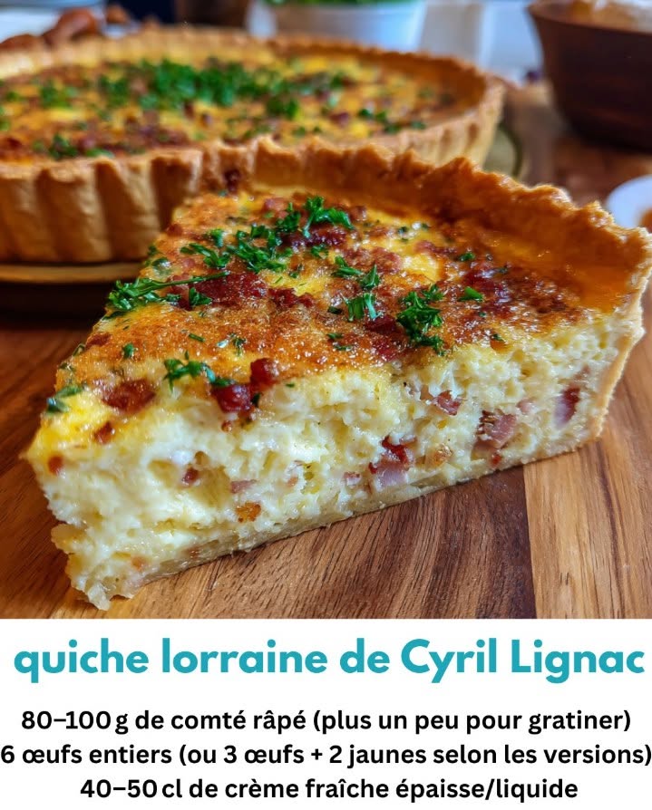 Quiche Lorraine Ingrédients (pour 4 à 6 personnes) 1 pâte brisée 200 g de lardons fumés 3 œufs 20 cl de crème fraîche épaisse