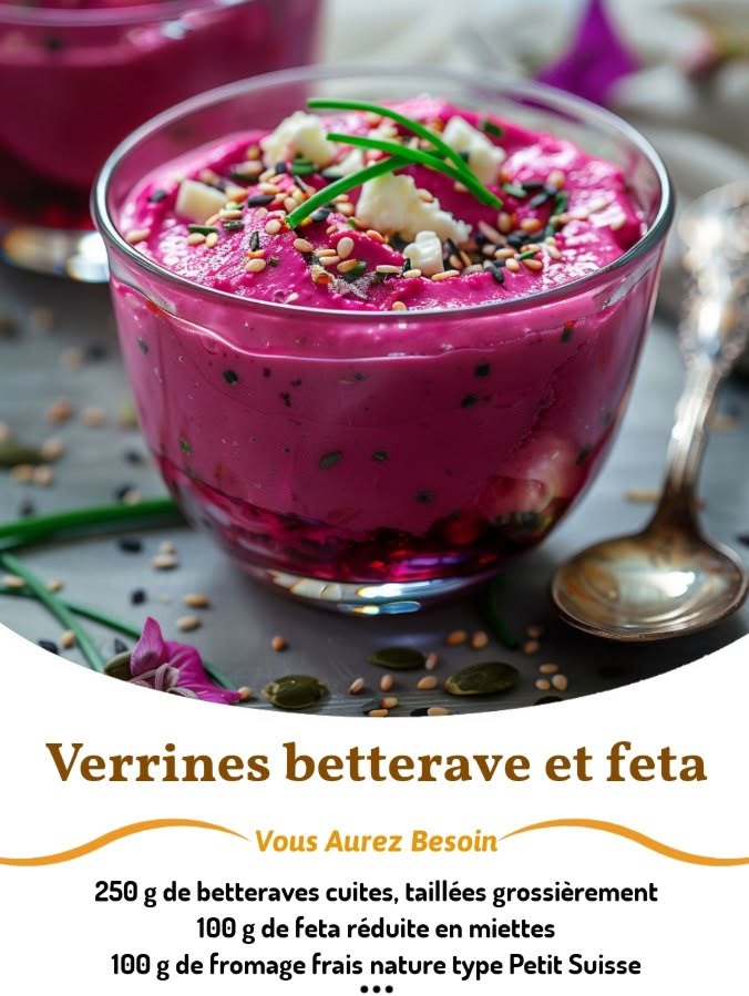 Verrines betterave et feta — une entrée fraîche, colorée et rapide à préparer, parfaite pour l’été ou un apéro chic ! Ingrédients (pour 4 verrines) : Base de mousse : 250 g de betteraves cuites, coupées grossièrement 100 g de feta, émiettée 100 g de fromage frais nature (type Petit Suisse ou fromage à tartiner) … Read more